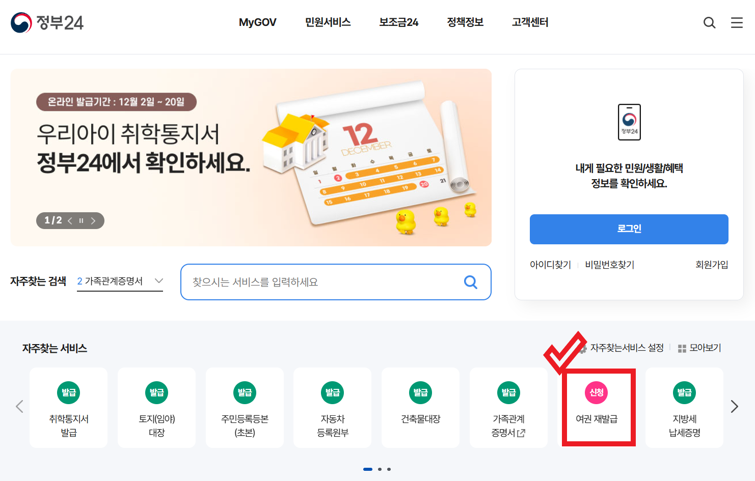 1. 정부24 홈페이지 바로가기